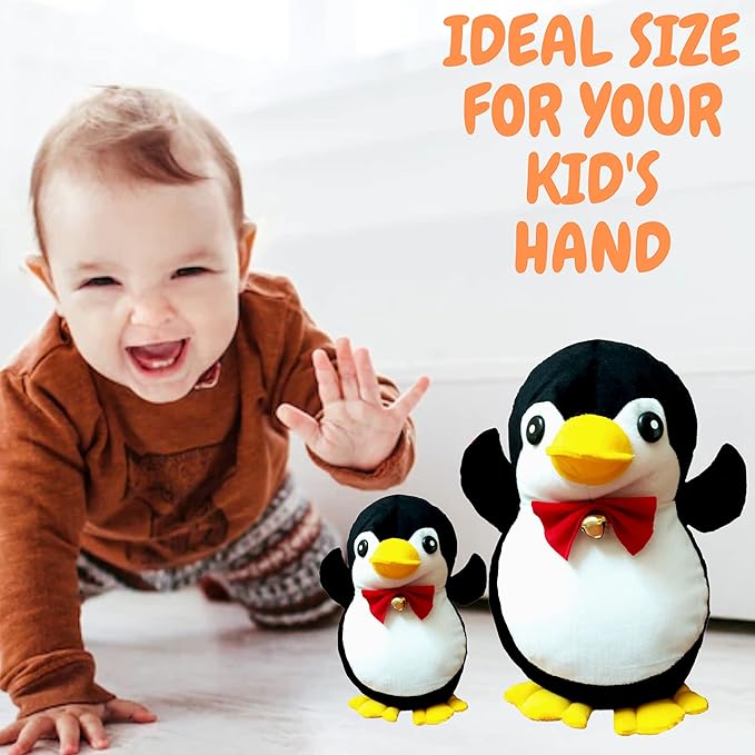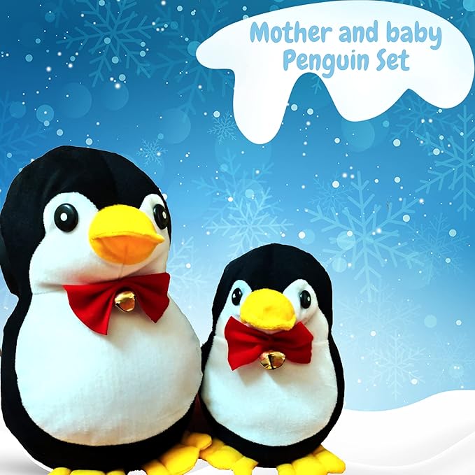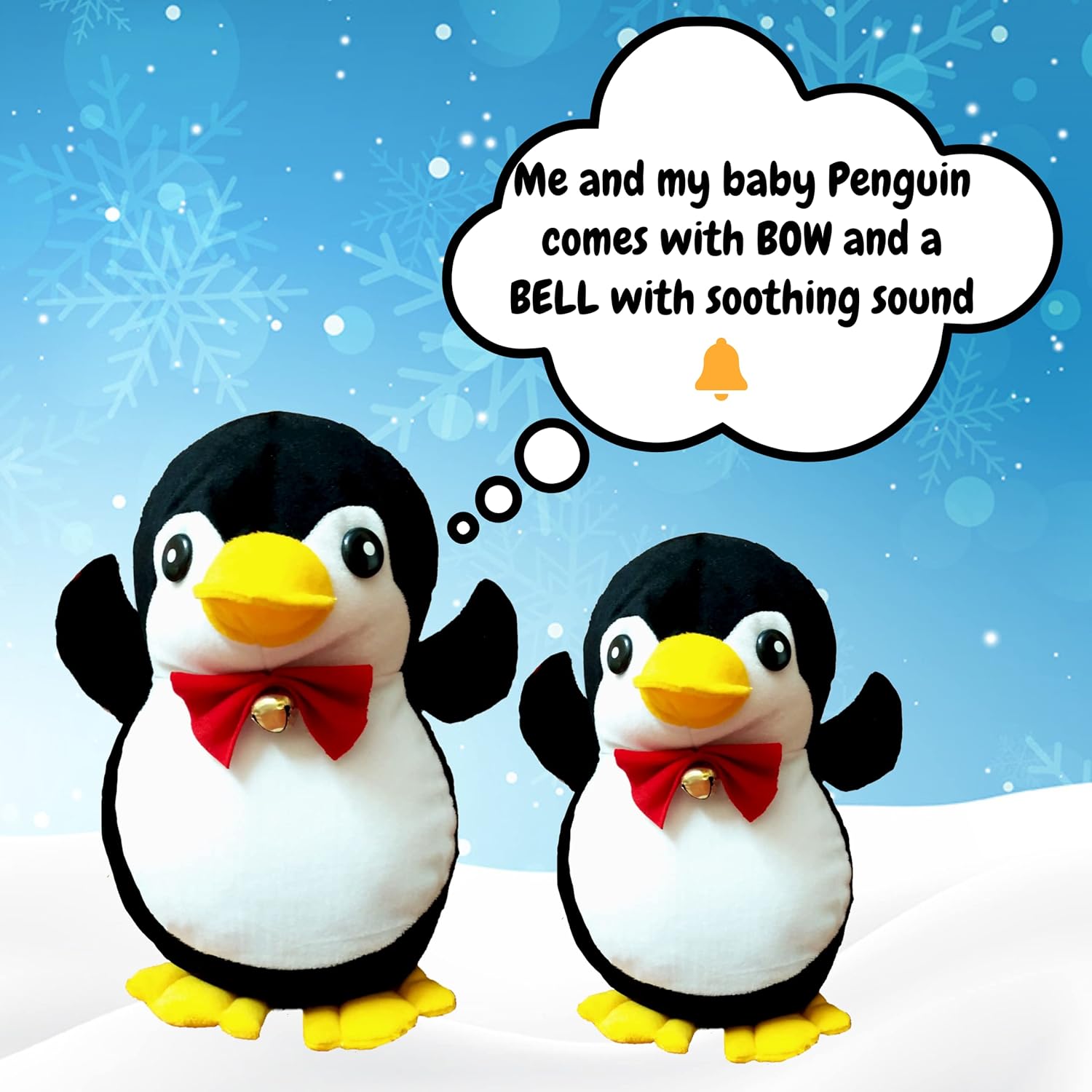 • ⭐ Kiddoglee Penguin Soft Toy combo is a Set of Two Penguins (Mother and Baby) having a bow and a bell that produces a soothing music.