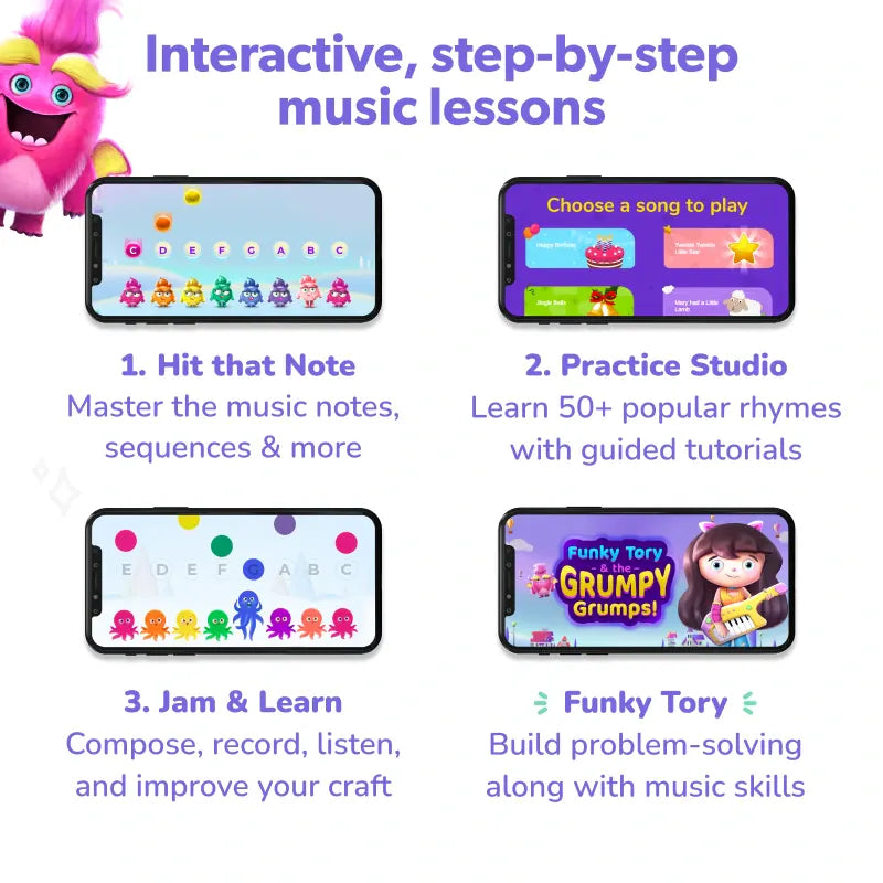 • A piano for kids to get friendly with musical notes and build musical intelligence.