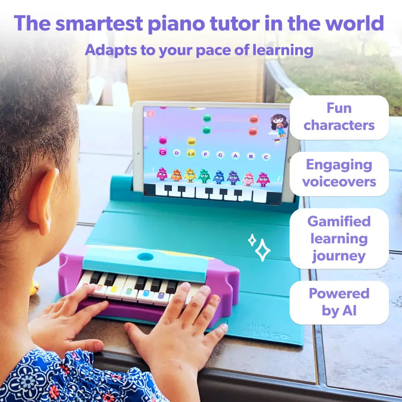 • AI-powered piano learning kit that makes the transition to a real keyboard easy.
