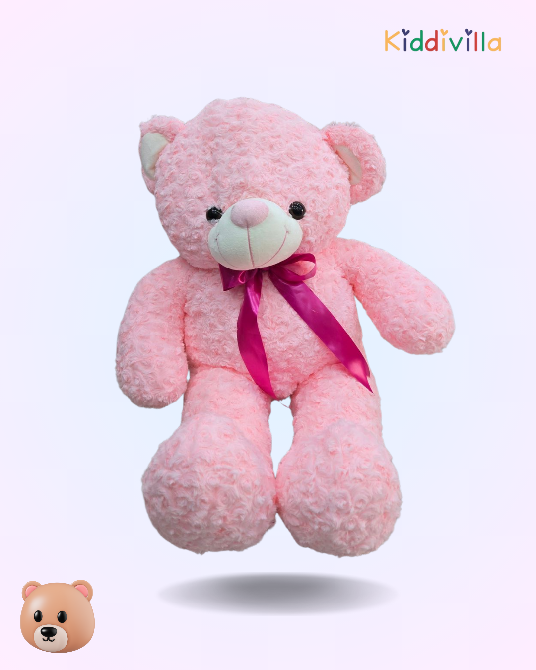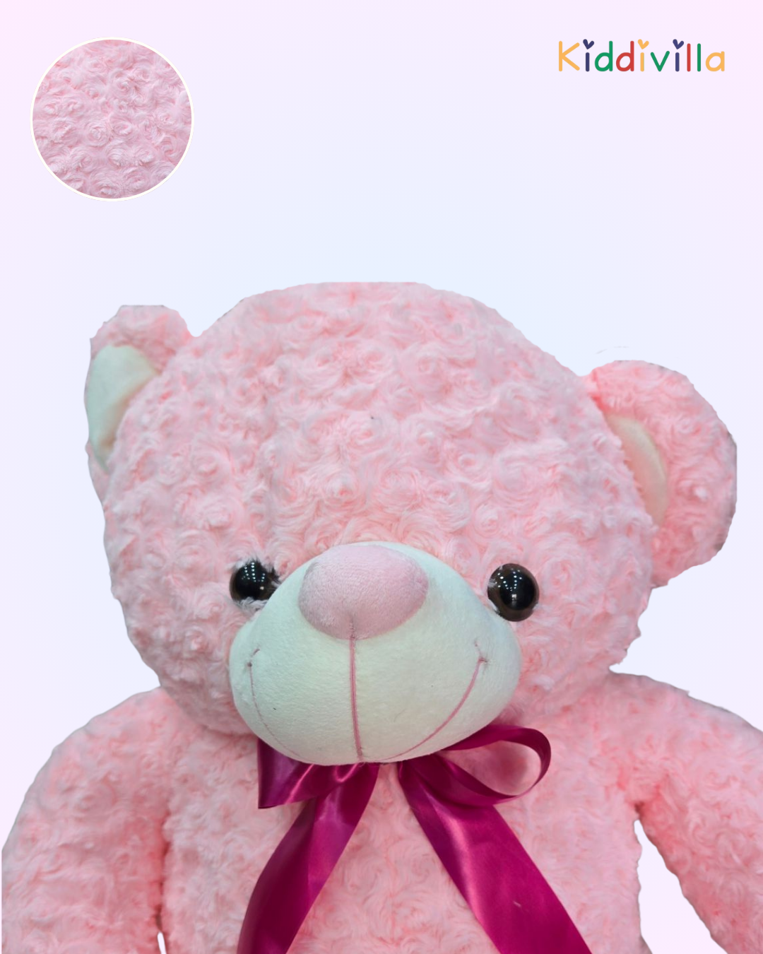 Premium Rose-Texture Pink Teddy Bear with Ribbon Bow – 70 cm