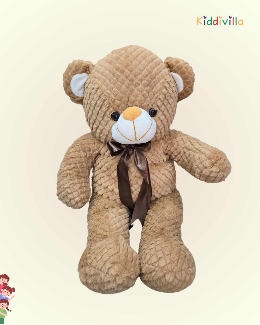 Premium Waffle-Texture Brown Teddy Bear with Bow – 70 cm