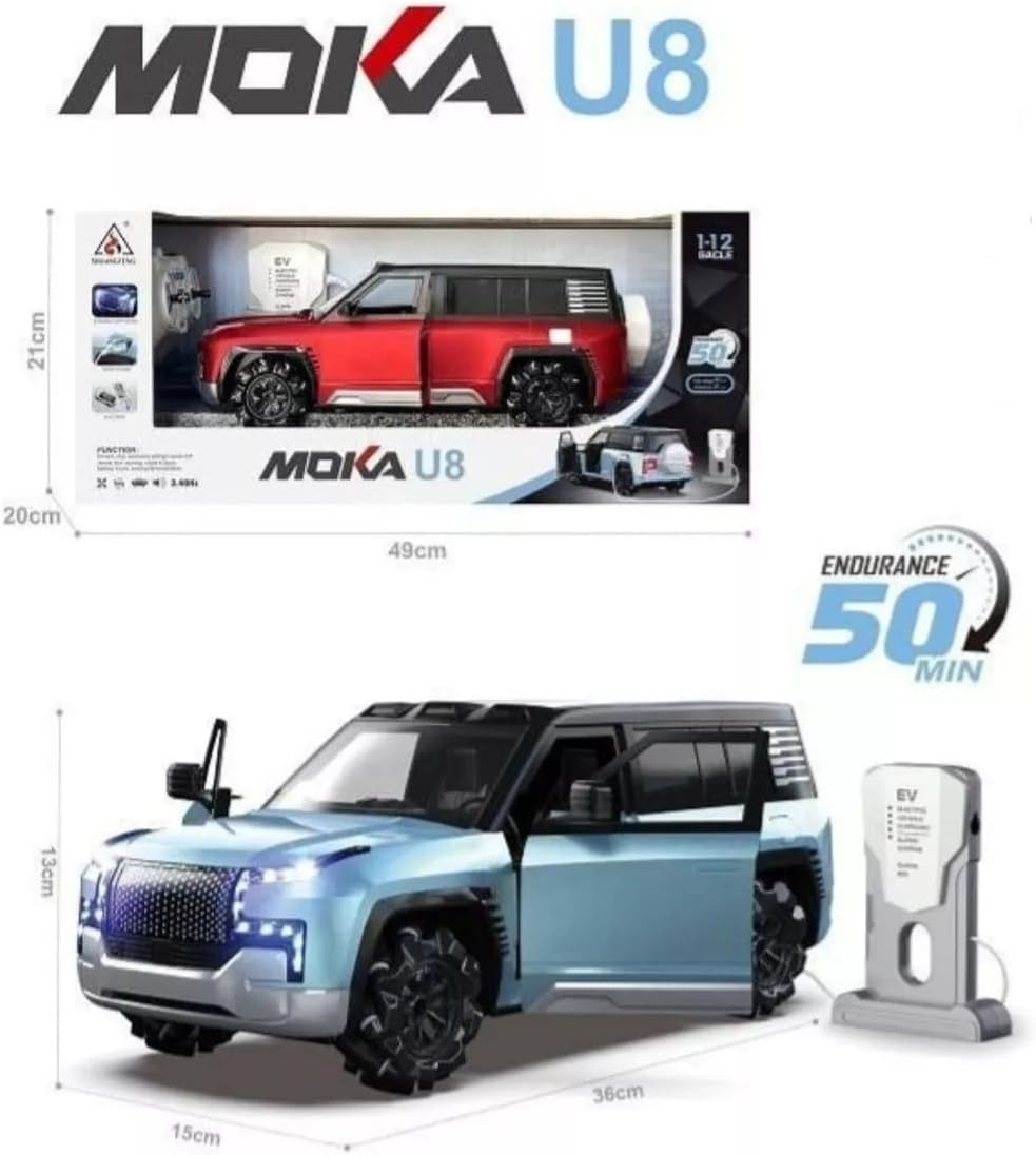 The Rechargeable Moka U8 1:12 Remote Control Toy Car offers precise control combined with innovative features. It includes an EV power charge station for efficient, eco-friendly recharging and an autopark function that simplifies complex driving maneuvers. With integrated lights and music, it delivers an engaging, realistic experience. Designed for reliability and performance, this model is ideal for enthusiasts seeking expert-level functionality in a compact, rechargeable toy car.