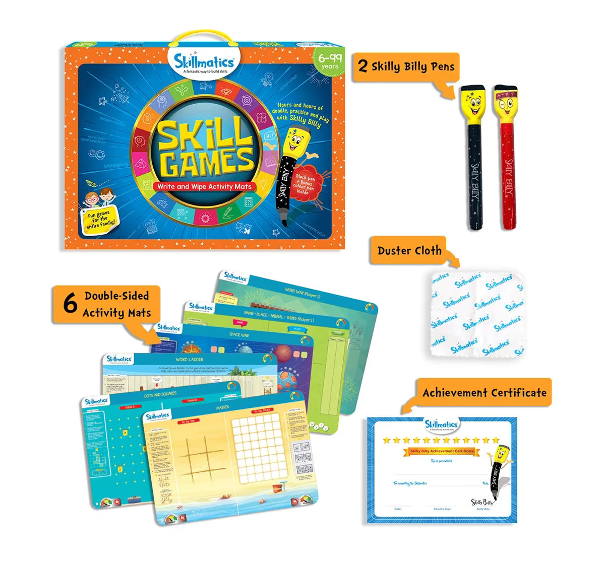 The ultimate collection of fun skill building games! Skillmatics Skill Games has over 13 repeatable games which have been carefully designed to build higher order skills in children while simultaneously ensuring that they have hours and hours of fun with their friends! Suitable for all ages, Skillmatics Skill Games is filled with truly innovative content that promises to be equally engaging for both children and parents!