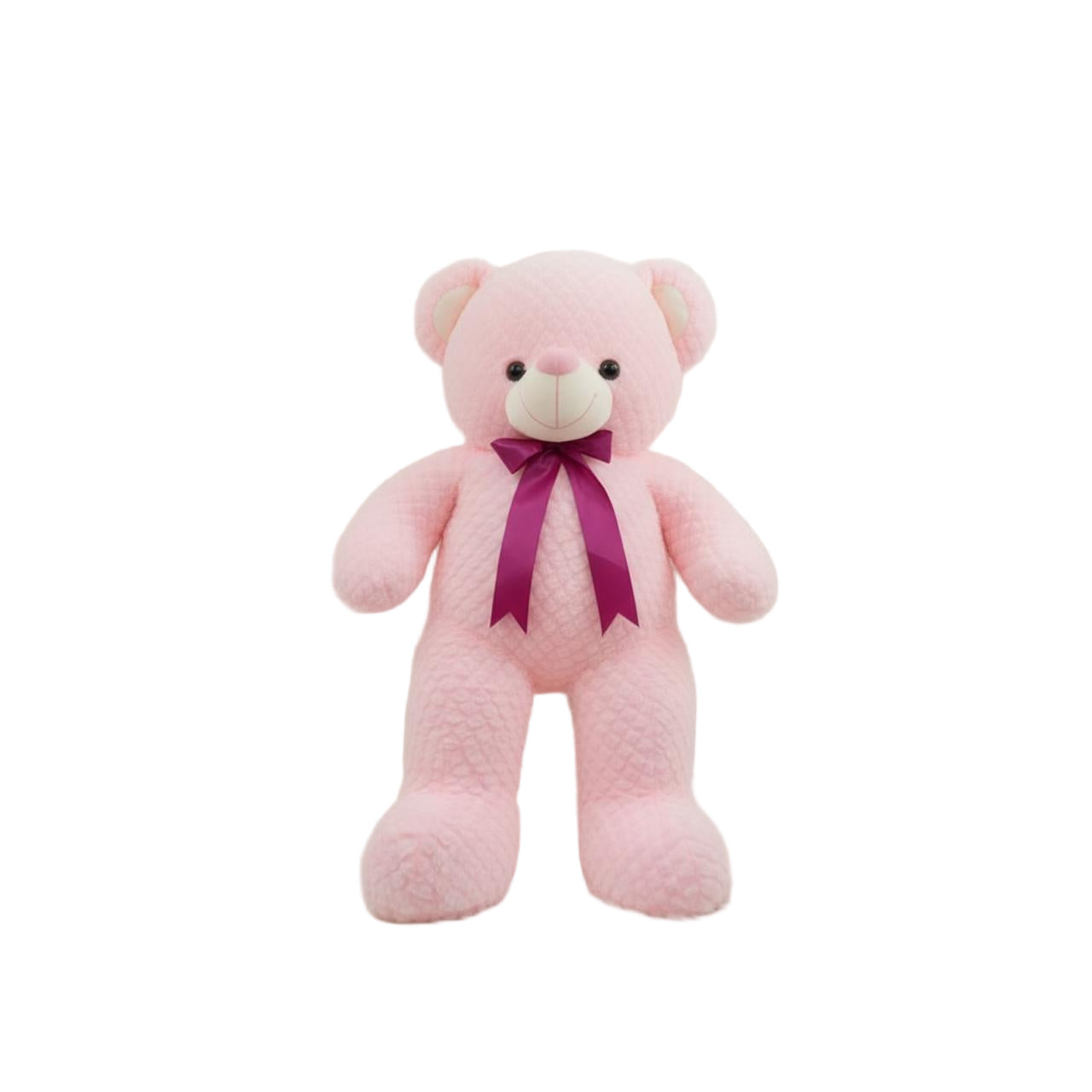Soft Pink Quilted Teddy Bear with Satin Bow – 70 cm