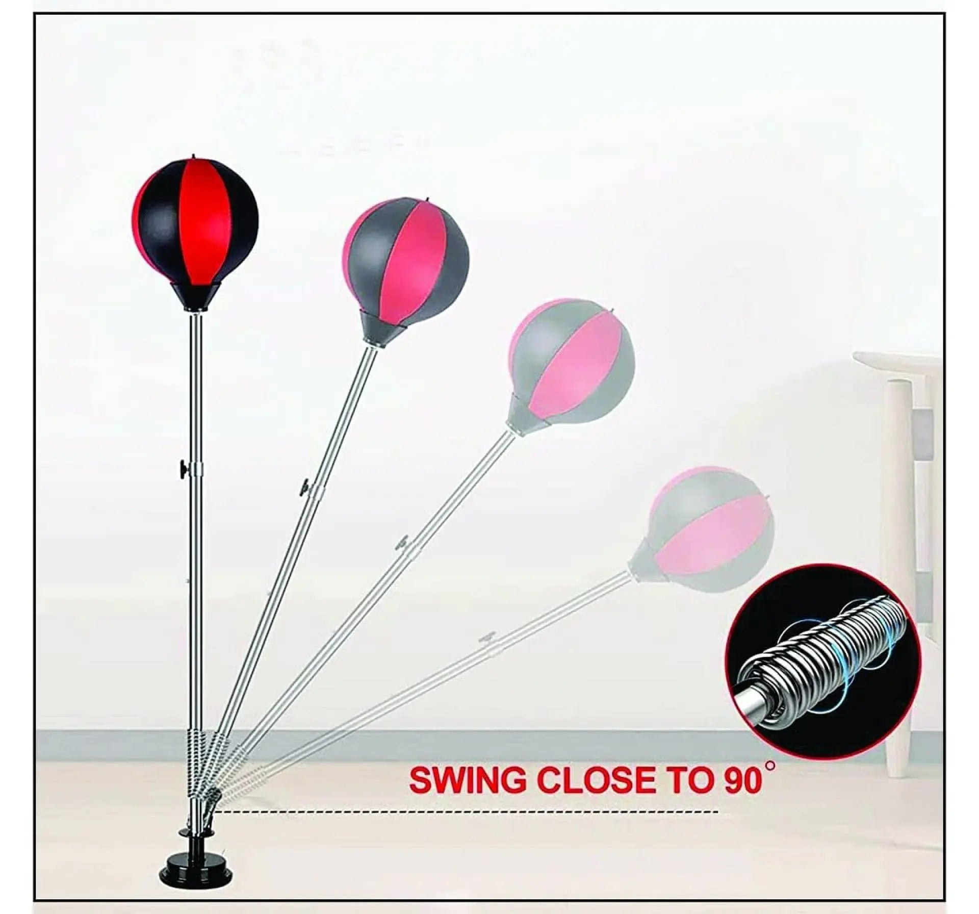 • Everything you need for a boxing workout is included in this punching bag kit, which is incredibly simple to set up. A set of kid-friendly boxing gloves, a sturdy vacuum base, an adjustable spring-loaded shaft, and a portable pump are all included with the inflated punching ball.