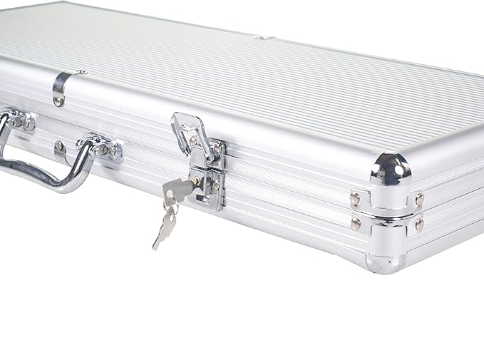 • Carrying Case – The aluminum case gives you a convenient option for storage or an easy and safe way to transport. Carrying case makes it easier to tote them around on game nights.It holds a lot of chips its still compact enough to travel with easily and for storage when you're not using it.