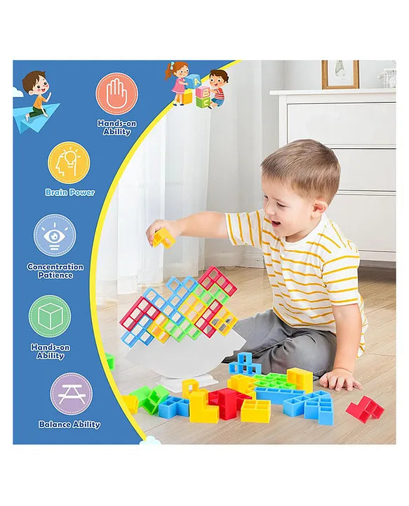 Get ready for family fun with the Tower Stacking Building Blocks Balance Game! This exciting set includes 16 colorful stacking blocks and 22 challenge cards for endless entertainment.