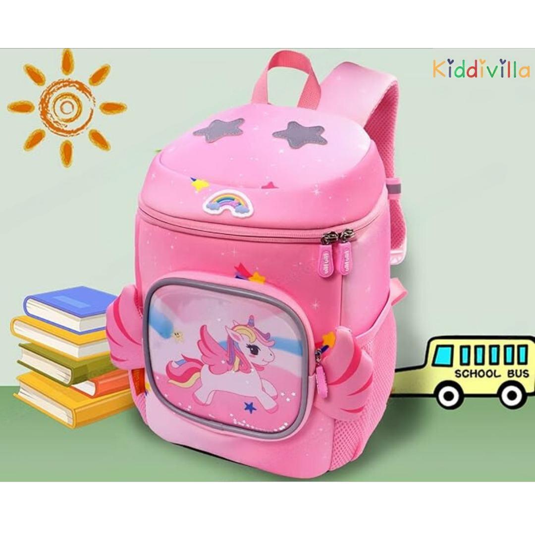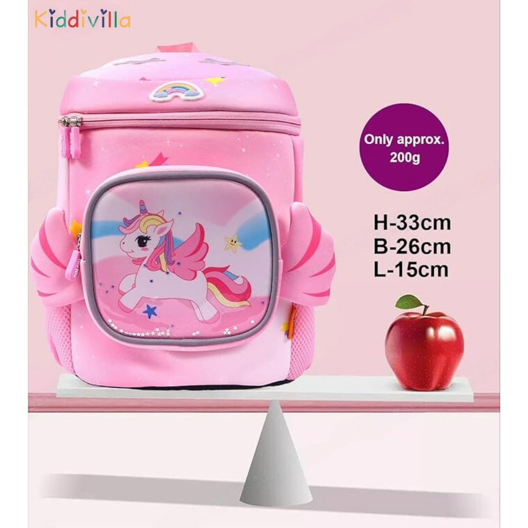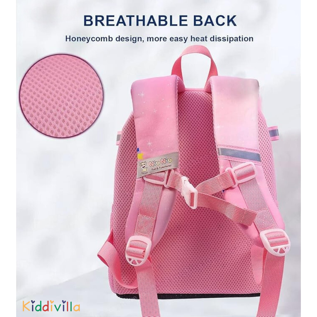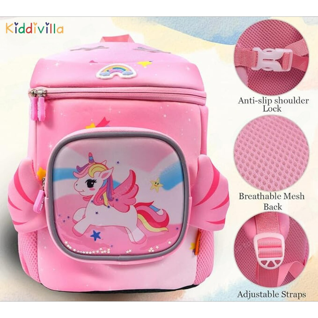 PROPER CAPACITY & MULTI STORAGE POCKETS -- 1 x roomy main pocket, 2 x side pockets and 1 Outer pocket/ This cute backpack for girls/boys can effortlessly store preschool students or toddler personal items. There are not many zippers so that kids do not get confused about where to place the thingsWONDERFUL GIFT - This Backpack can also be used as a decorative piece in a child's nursery. Sweet gift for children's birthday, christmas, thanksgiving and other memorial day. Perfect backpack for girls, kindergartens and great for girl's bedroom decor.HIGH QUALITY - Made of high quality safety environmental soft plush fabric super-squishy material. Could be washed. It meets and passed CPSIA and CCPSA Standards.PERFECT TO CARRY OUTSIDE AND INSIDE - The weight of the backpack is only about 10 oz, which is perfect for your kids when going to the zoo, playing at the park, going to kindergarten, traveling and any other outdoor activities for all day. Meanwhile, Girls and Toddlers goods such as napkins, snack and books can be loaded together. It can be also a toy for kids after fully filled. There is an anti-lost hook also included.ERGONOMIC & COMFORTABLE DESIGN -- The child-size backpack is perfect for toddlers going to preschool or play dates.The adjustable padded shoulder straps offer support and comfort while the adjustable chest strap stabilizes the load throughout the day's activities.
