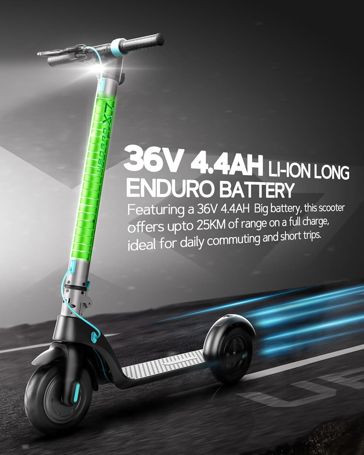 • 【Detachable Long-range Battery】The lithium-ion battery is globally covered by product liability insurance. Its exclusive detachable structure allows you to bring the battery for flexible charging everywhere without the need to carry the whole scooter & the range of this scooter is up to 25km.