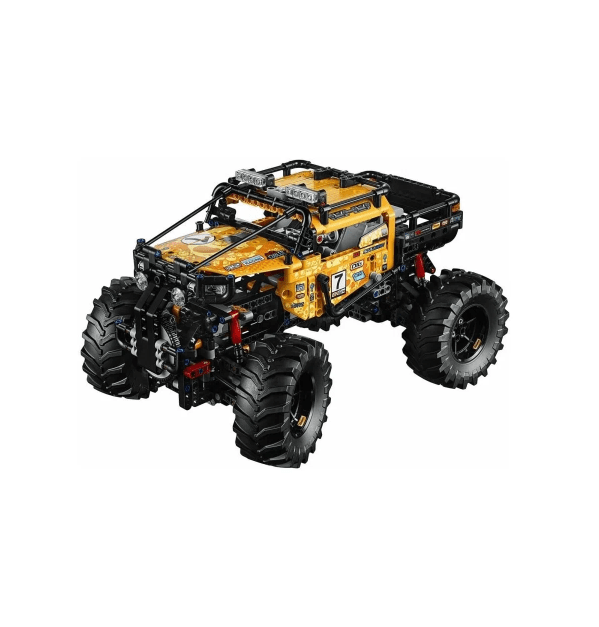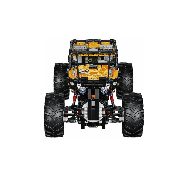 With remote control functionality, builders can not only construct their very own monster truck but also drive it over challenging terrains and obstacles. The detailed design includes big foot tires, realistic suspension, and vibrant yellow panels with authentic racing decals. The model measures approximately 27 cm long, 20 cm wide, and 21 cm tall, making it a standout on any display shelf.